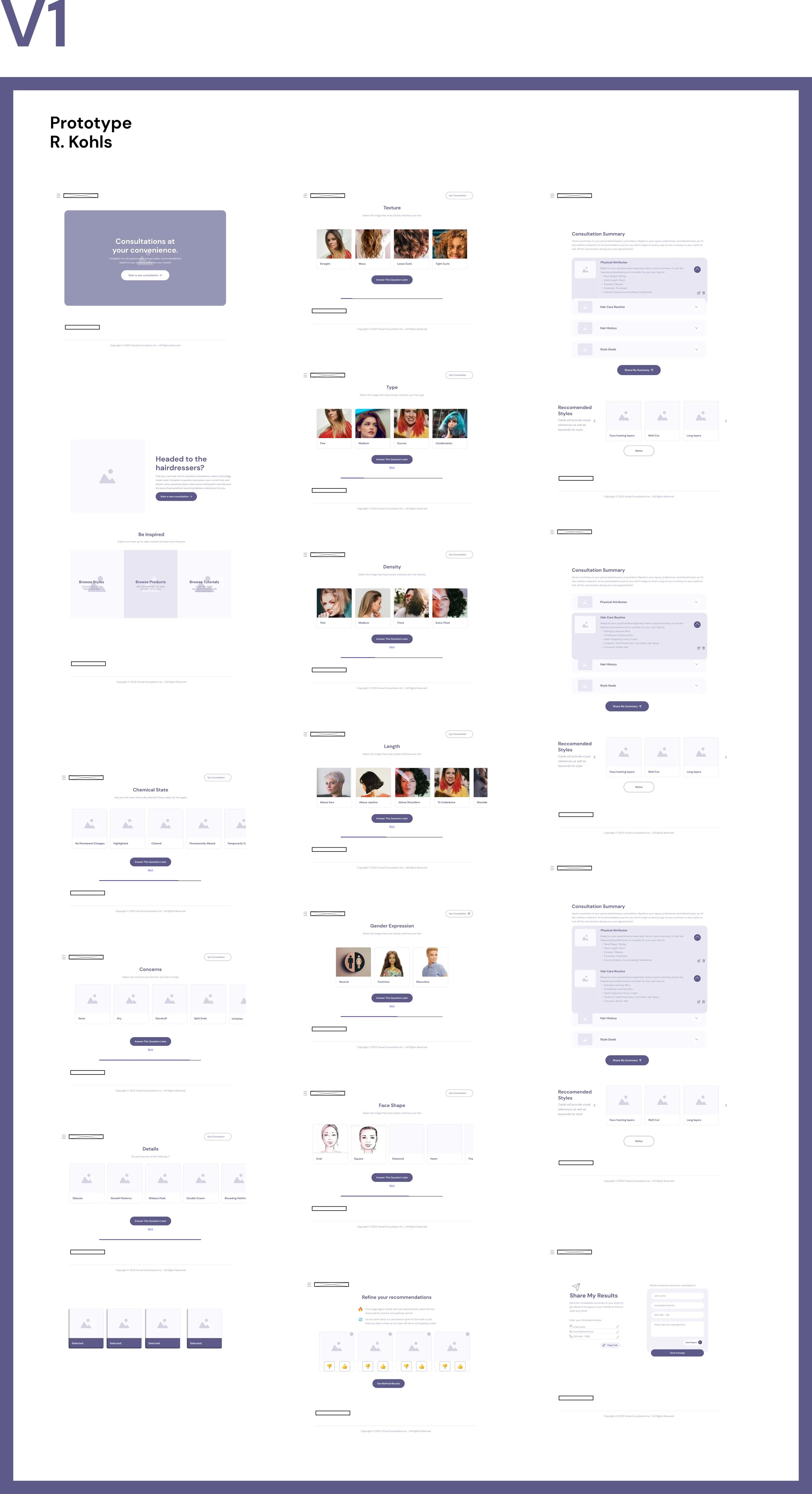 For user testing, I met virtually with previous clients of mine. I had closed my salon within the last year, as they all had recent experience having a consultation with a new stylist.